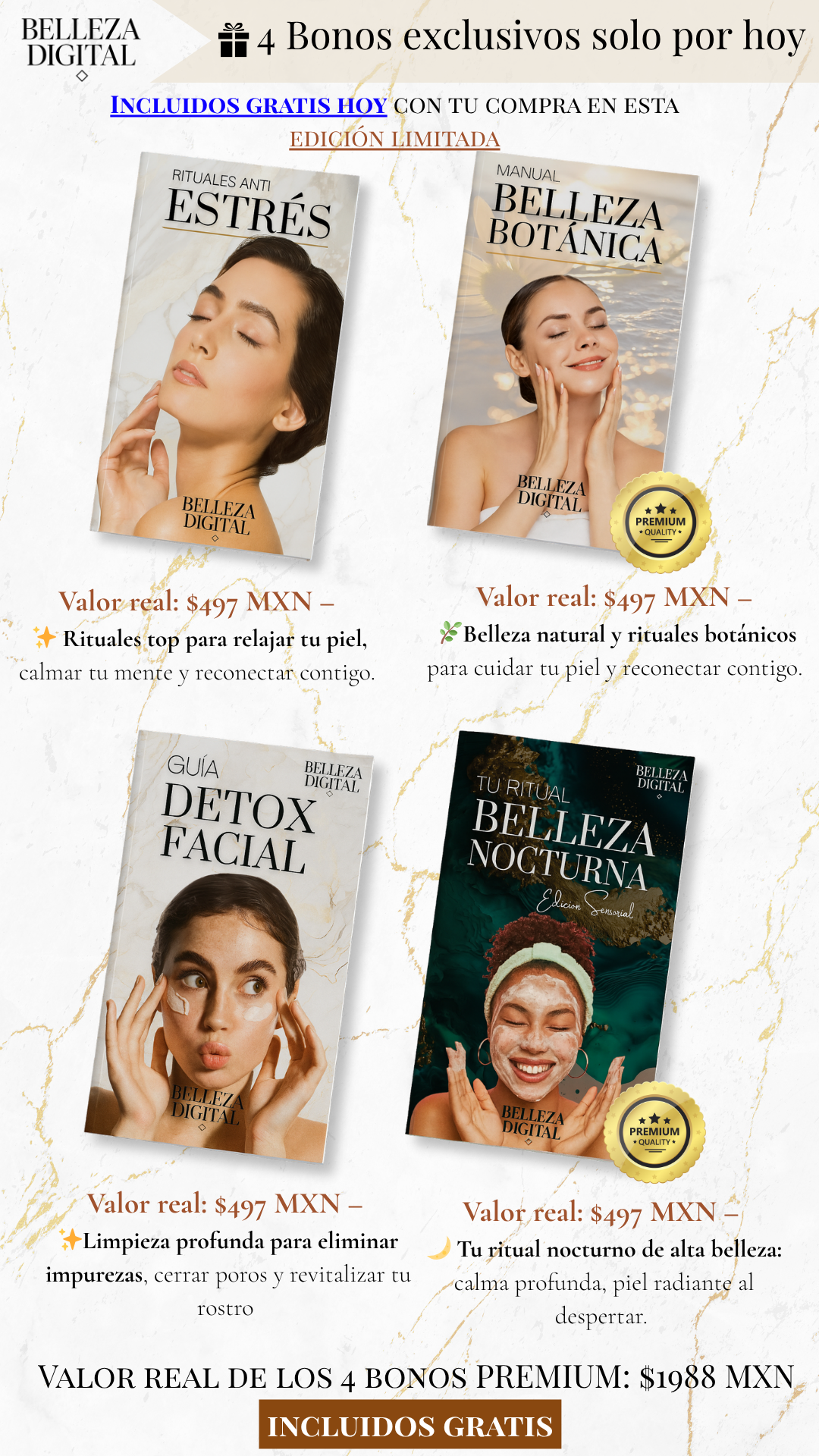Confieso que soy adicta al skincare y este PDF está mil veces mejor que muchas cosas que he pagado más caras. Además los bonos están divinos. Me urge imprimirlo para tenerlo en físico 💗